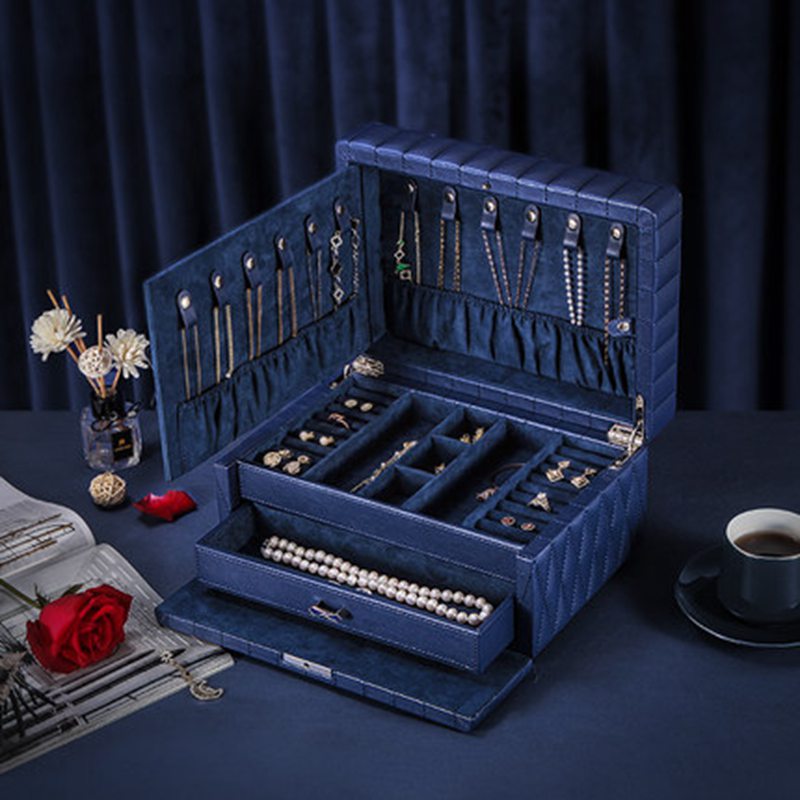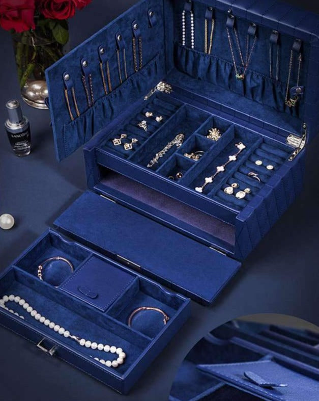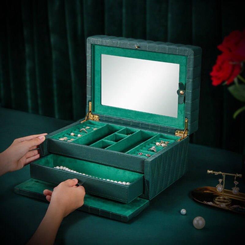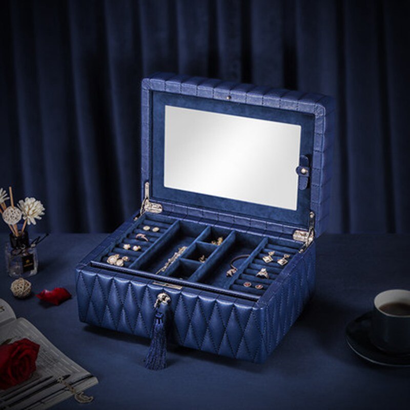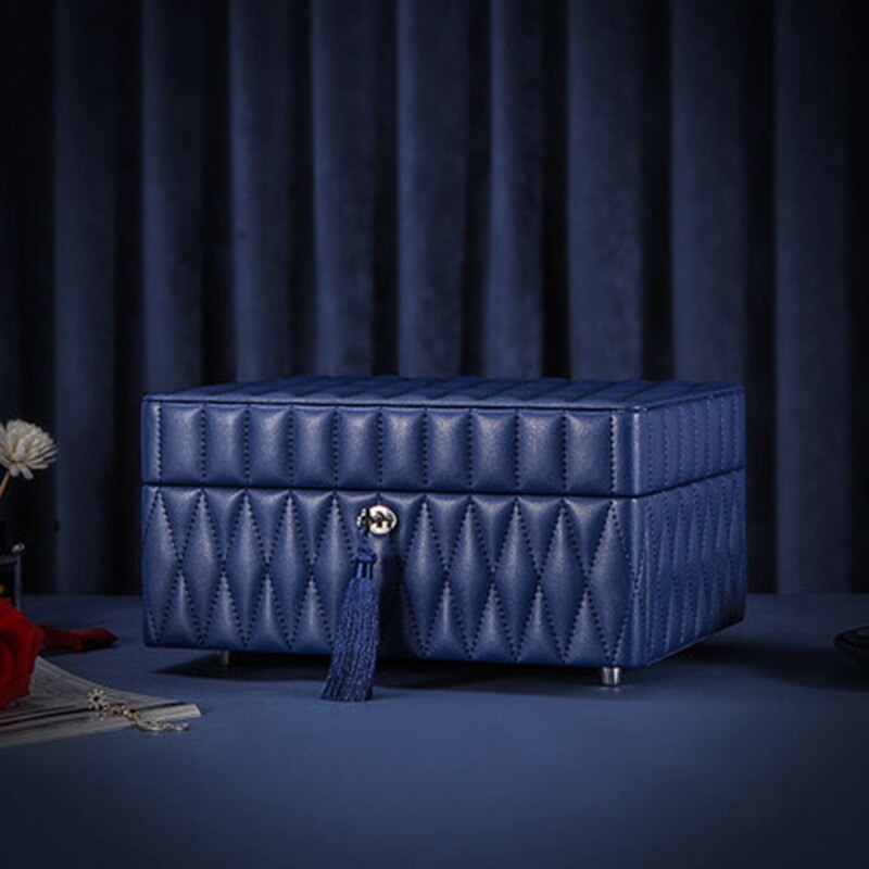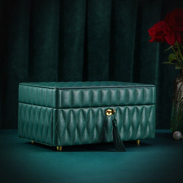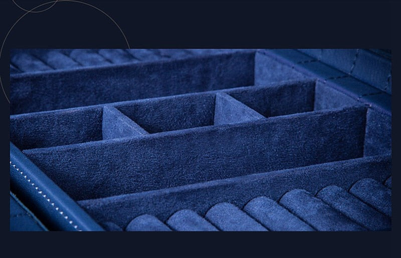 Upptäck lyxen med vårt smyckeskrin i äkta skinn, en perfekt plats för att förvara och skydda dina mest älskade smycken. Med en elegant design och hållbara material, kompletterar detta skrin din inredning och blir en tidlös investering i din smyckessamling. Perfekt för alla typer av smycken, från ringar och armband till halsband och örhängen, detta smyckeskrin erbjuder både stil och säkerhet.
