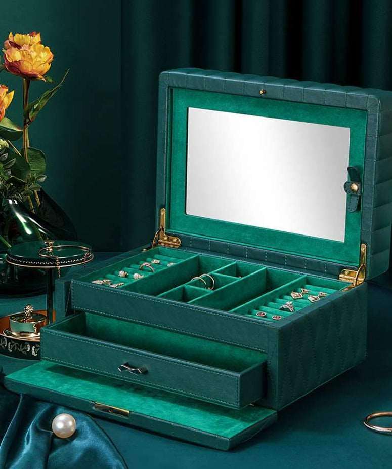 Föreställ dig morgnar fyllda med glädje när du öppnar ditt smyckeskrin i äkta skinn, där dina favoritsmycken väntar på att sätta pricken över i:et på din outfit. Detta skrin är inte bara en förvaringslösning, det är en del av din dagliga ritual. Gör ditt hem mer elegant och din smyckessamling mer organiserad med detta fantastiska smyckeskrin.