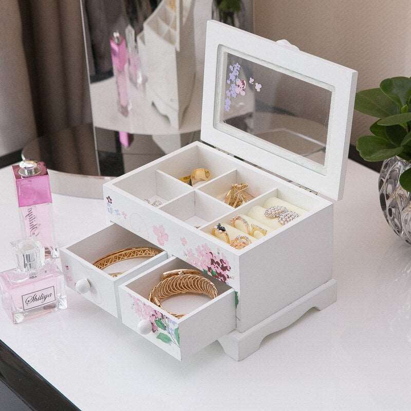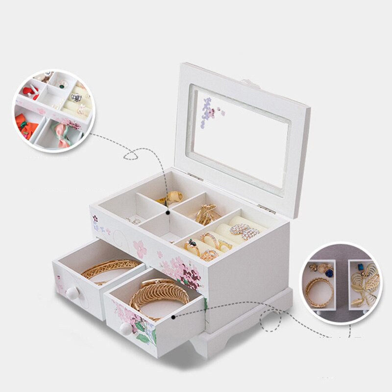 Detta smyckeskrin i trä för barn är utformat för att vara mer än bara en förvaring. Det lär barnen vikten av att ta hand om sina personliga ägodelar samtidigt som det ger dem en känsla av stolthet över sin egen lilla samling. Dess slitstarka konstruktion säkerställer att det håller i lång tid, medan den inbjudande designen med blommotiv stimulerar barnets kreativa sida.