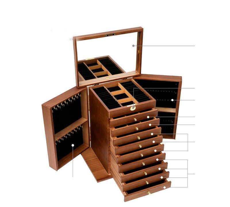 Låt detta stora smyckeskrin i trä bli mittpunkten i din smyckesamling. Perfekt för dem som uppskattar både estetik och funktion, det är mer än ett enkelt skrin - det är en kärleksförklaring till dina mest värdefulla ägodelar. Upplev lyxen av perfekt ordning och stil med detta fantastiska smyckeskrin.