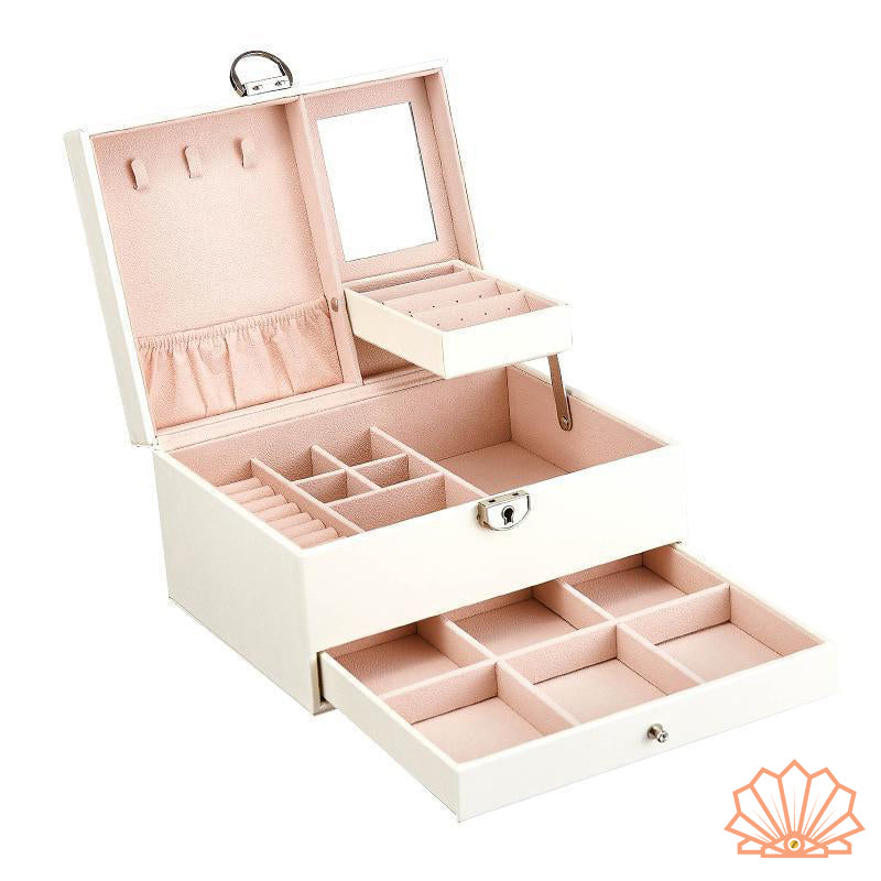 Det vita smyckeskrinet erbjuder mer än bara förvaring; det erbjuder en möjlighet att organisera ditt liv smidigt. Med flera fack i olika storlekar och en praktisk spegel inuti, kan du enkelt anpassa dina accesorier för dagens aktiviteter. Dess noggrant utformade design förhindrar att smycken trasslar eller skadas. Upplev skillnaden i vardagen med ett smyckeskrin som kombinerar stil och funktionalitet på bästa sätt.